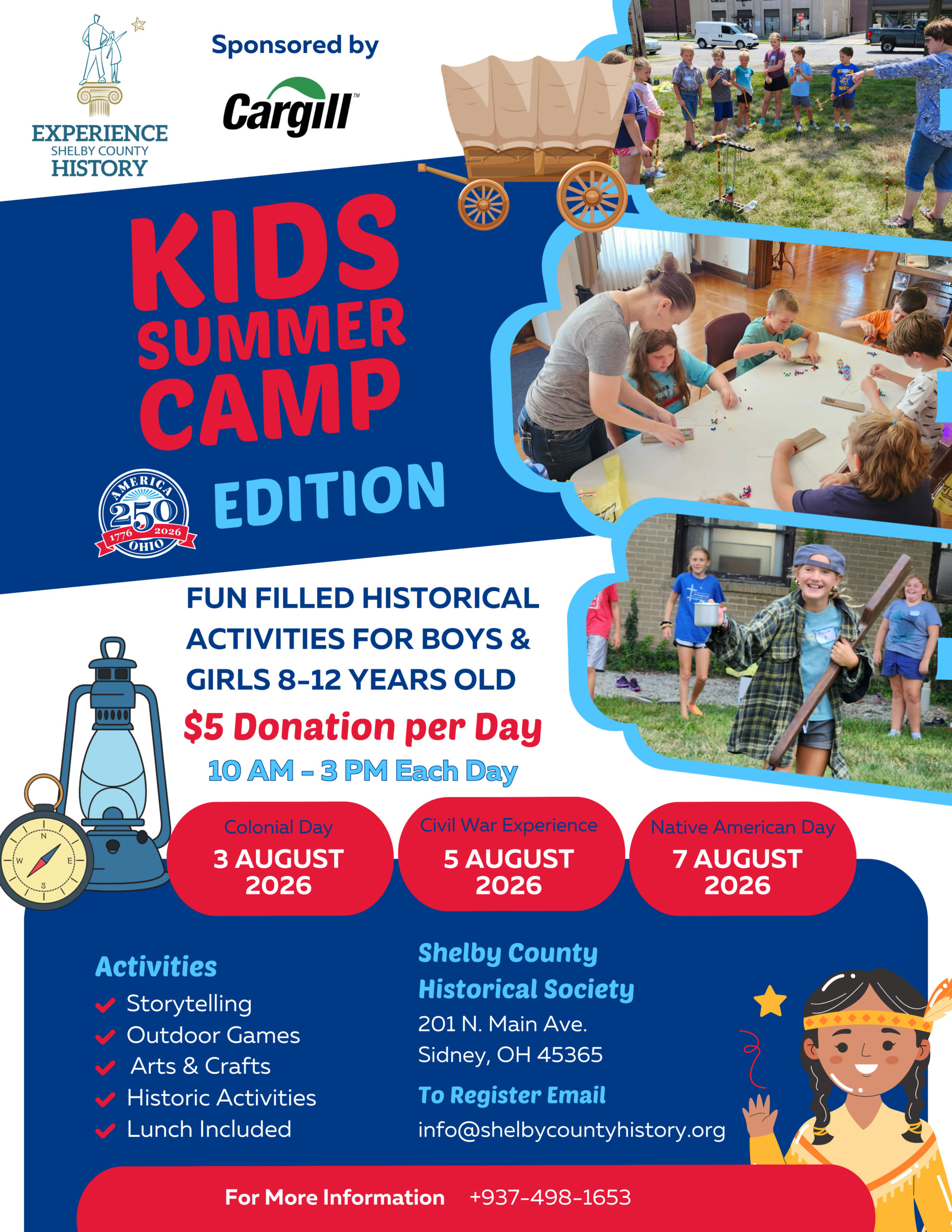 Get ready for a summer adventure through time! The Shelby County Historical Society invites kids to join a week of fun, learning, and hands-on activities at the America 250 Kids Summer Day Camp—a special camp designed to celebrate our nation’s story in the lead-up to the United States’ 250th birthday in 2026.